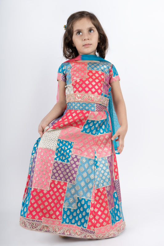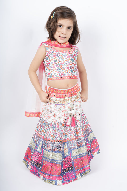 Multicolored Top and Lehenga with Mirror and Sequin Detailing