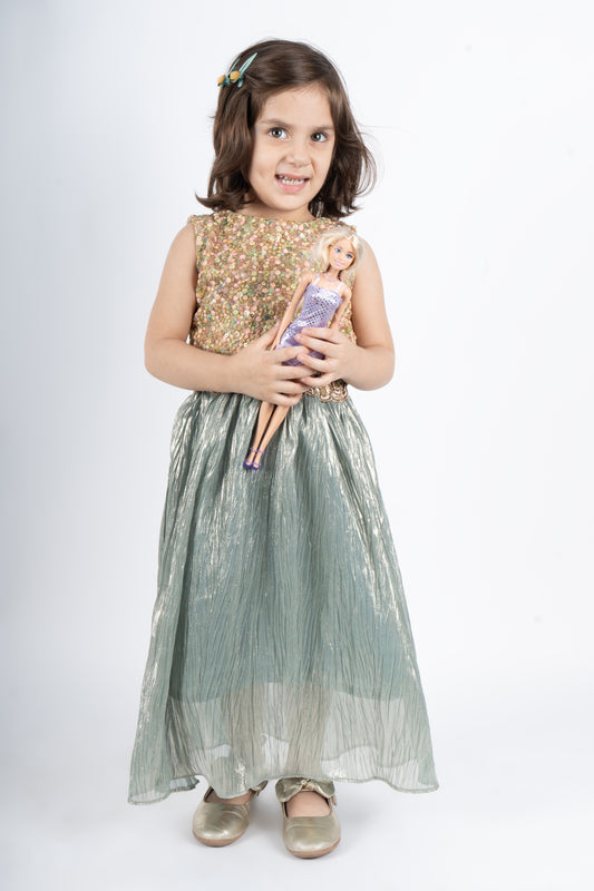 Sharara with Golden Thread Work with a Matching Ivory Flared Sharara Bottom